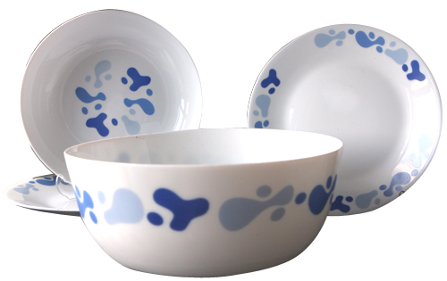 Setul este fabricat din sticla opal numita Arcopal - un material foarte rezistent la socuri termice si mecanice.