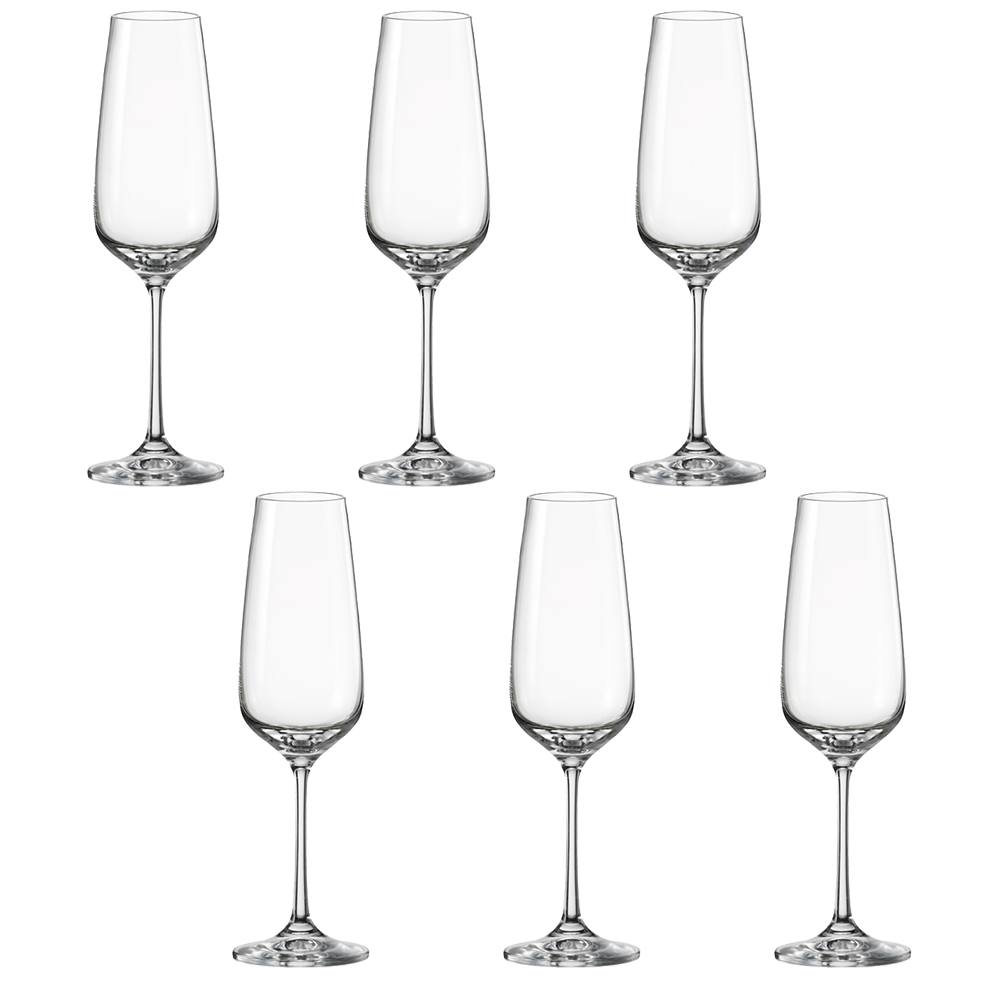Paharele au corpul inalt si ingust ce permite afisarea perfecta a vinurilor spumante si a sampaniei si totodata asigura colectarea aromelor.