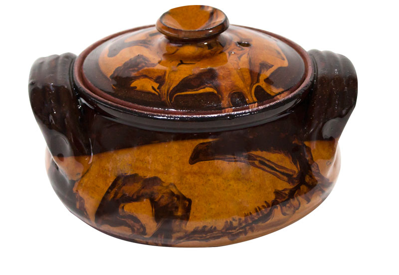 RAKI Oala din lut, ceramica, cu capac, pentru sarmalute, 600ml.