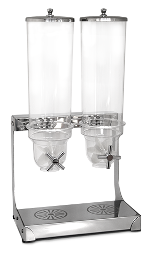 Dispenser dublu 2x3,5l cereale, fulgi porumb, ovaz, nuci, cu stand din inox RAKI