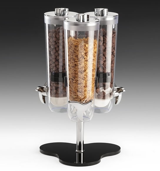 Dispenser cereale triplu rotativ 3x2lt cu suport acrilic cereale RAKI