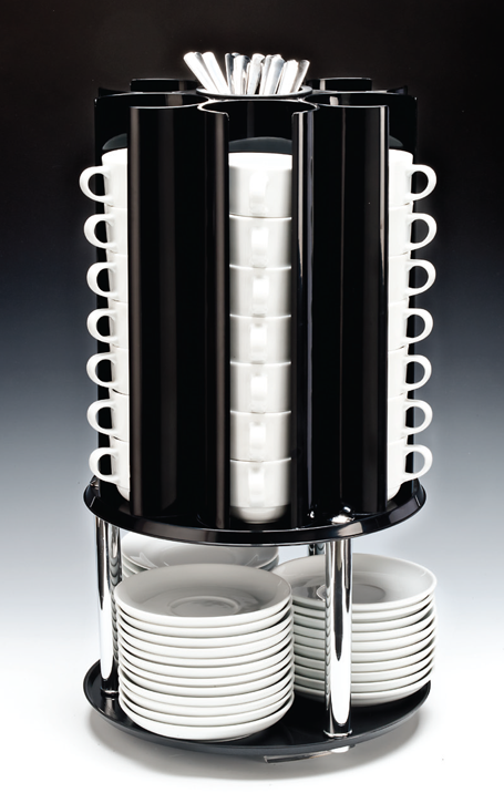 Stand rotativ pentru cesti, farfurii si lingurite, D30xh55cm, policarbonat RAKI