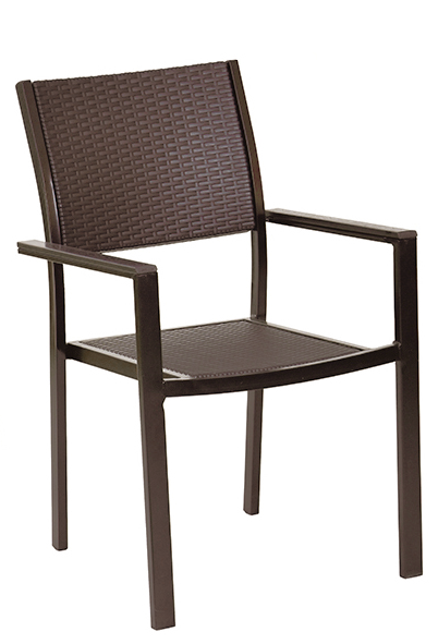 Scaun cu brate, plastic aspect ratan, cadru metalic, 58x53xh88cm, maro RAKI