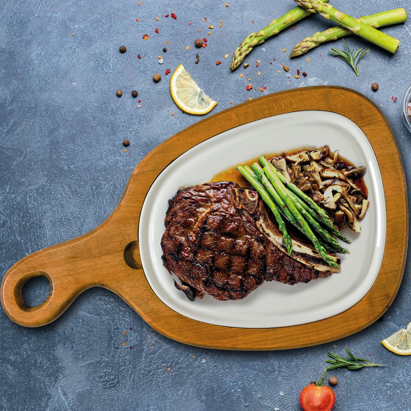 BONNA PIUMA WOOD Platou lemn pentru servit 42x25,5xh2,5cm. Se vinde doar platoul din lemn. Farfuria din portelan se achizitioneaza separat.
