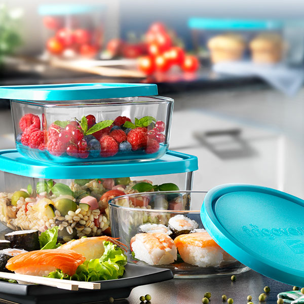 BORMIOLI FRIGOVERRE Caserola sticla cu capac 15x15xh6,4cm 1000ml.