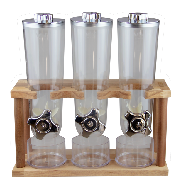 RAKI Dozator cereale si nuci cu 3 recipiente si suport din lemn
