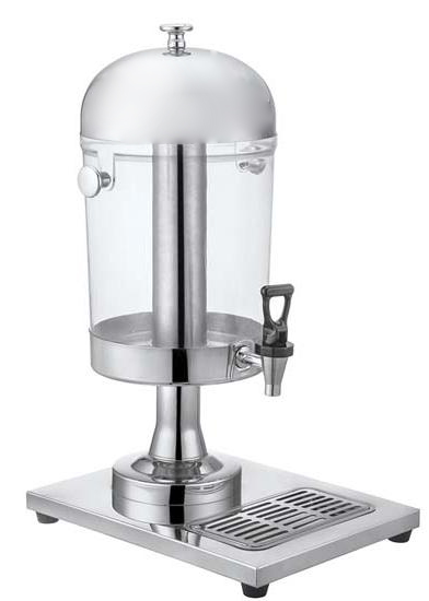 Dispenser pentru suc ce poate fi folosit pentru autoservire. Corpul este realizat din inox iar containereul este din polipropilena transparenta. Este dotat cu un robinet cu clapeta, tava pentru picaturi si capac tip clopot.