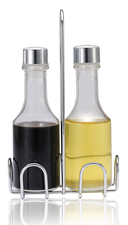 Set ulei maslina si otet cu suport cromat, set 3 piese RAKI Colectia EKO LINE