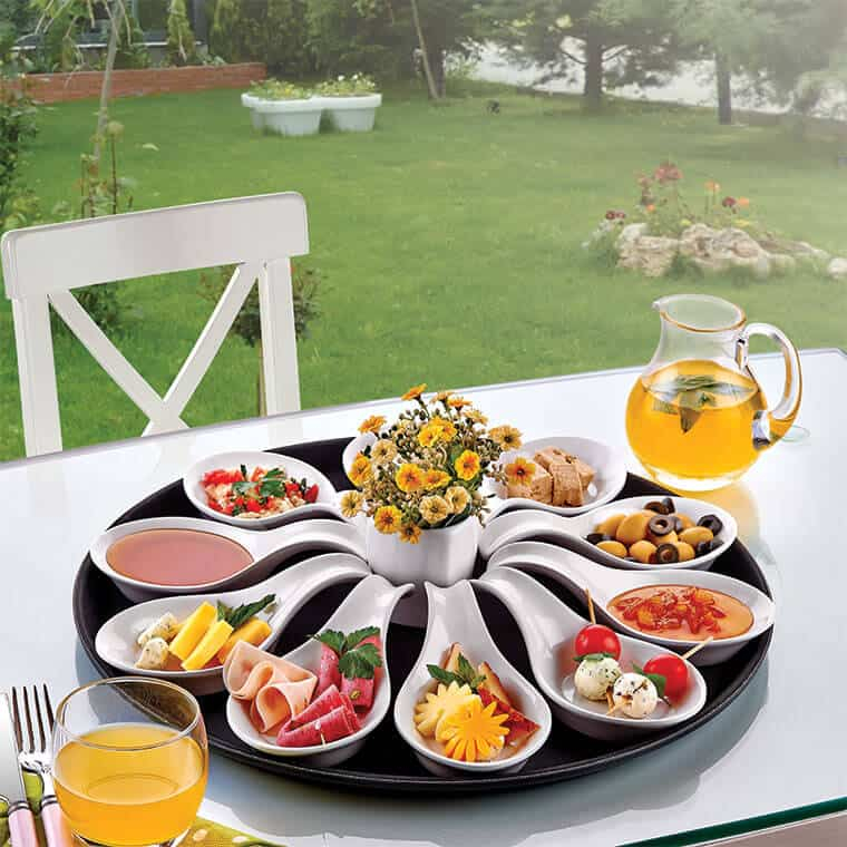 Vasele din melamina sunt potrivite pentru servirea si prezentarea preparatelor.