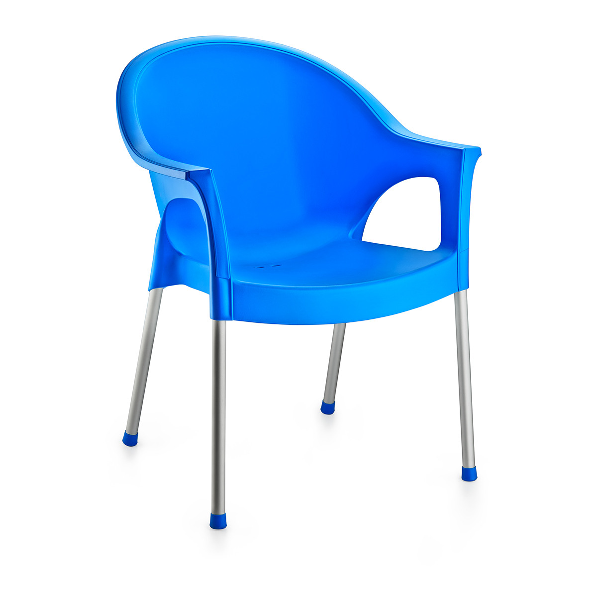 Scaun gradina/terasa cu brate, albastru, 58x50xh82cm, picioare aluminiu si sezut polipropilena RAKI BERGAMA