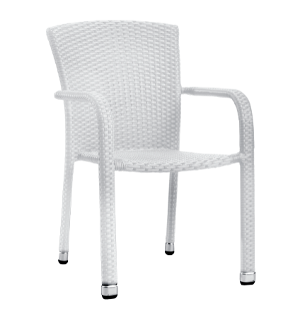 RAKI PALMAR Scaun gradina/terasa cu brate, ratan sintetic, cadru aluminiu, alb, 56x56xh82cm.