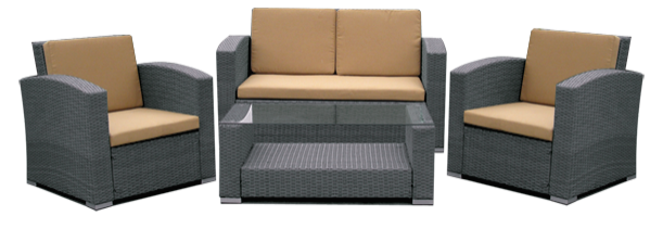 Set mobilier terasa, gradina 4 piese din poliratan cu cadru din aluminiu, masa 100x50x40cm, canapea 130x77x79cm si 2 fotolii 73x77x79cm, gri RAKI PARAIBA