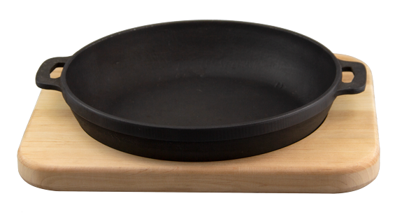MAYSTERNYA Tava din fonta cu suport lemn 20xh4cm + burete sarma.