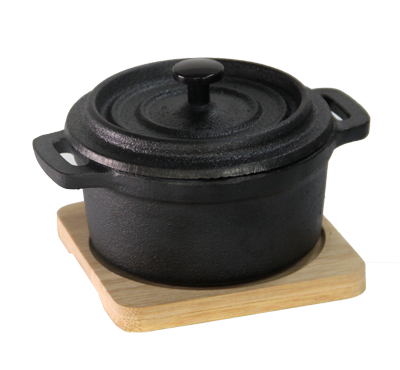 RAKI Mini oala rotunda fonta D9,2cm cu suport bambus.