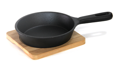 RAKI Mini tigaie fonta rotunda D11,5cm cu suport bambus.