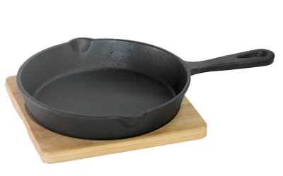 RAKI Mini tigaie fonta rotunda D15cm cu suport bambus.